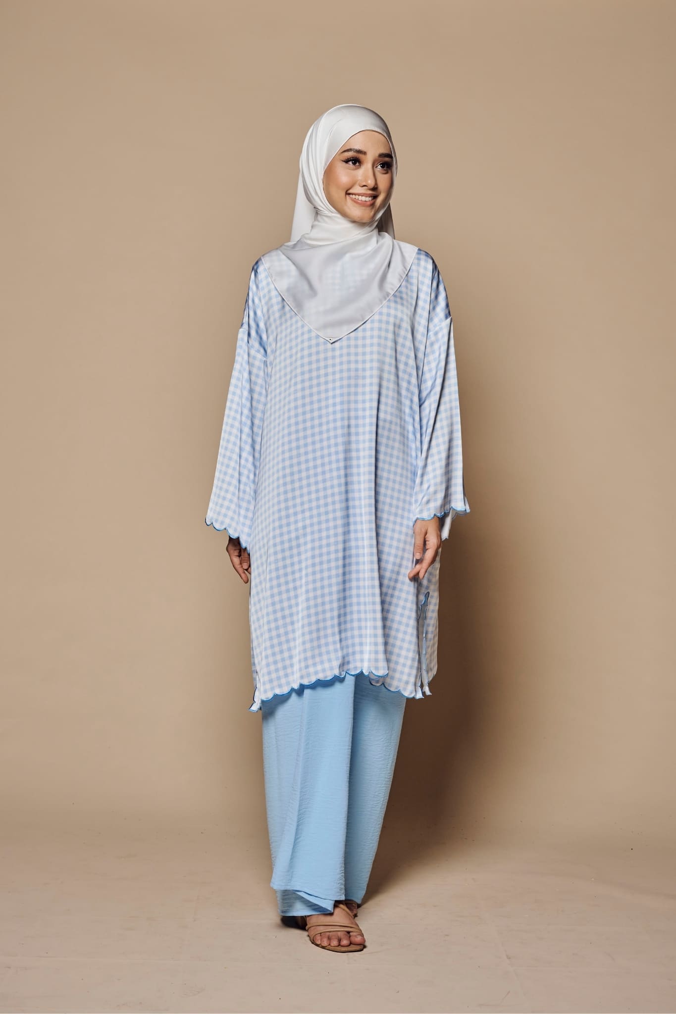 With its luxurious material, stylish gingham pattern, thoughtful design, and detailed scalloped embroidery, Kurung Matahari 2.0 is the ultimate choice for those who appreciate a blend of tradition and modern flair.
