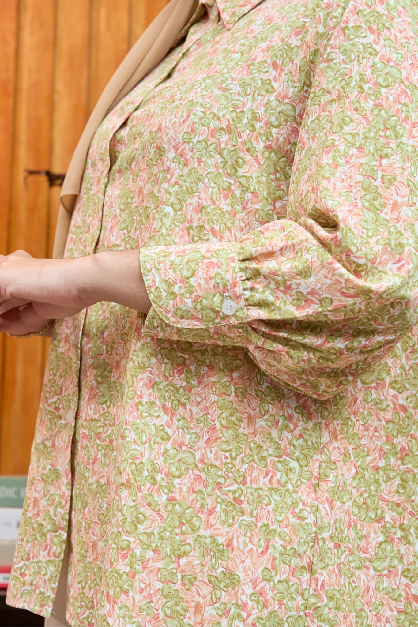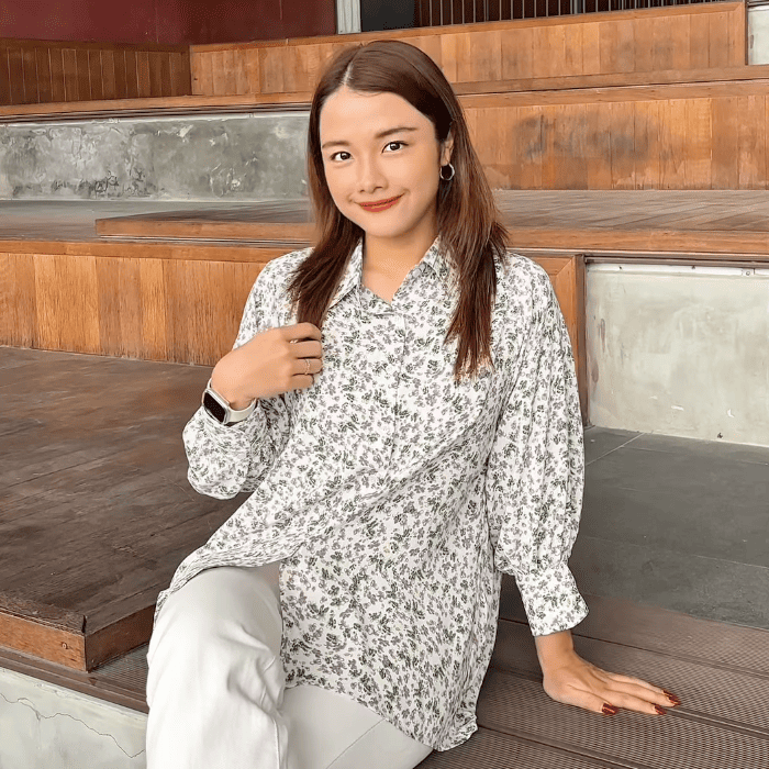 Crafted for comfort with a relaxed fit, structured collar, and subtle puffed sleeves, Maya Springtide is perfect for both sunny strolls and graceful gatherings. Whether paired with crisp pants or a flowing skirt, this floral beauty is your go-to for effortless charm.