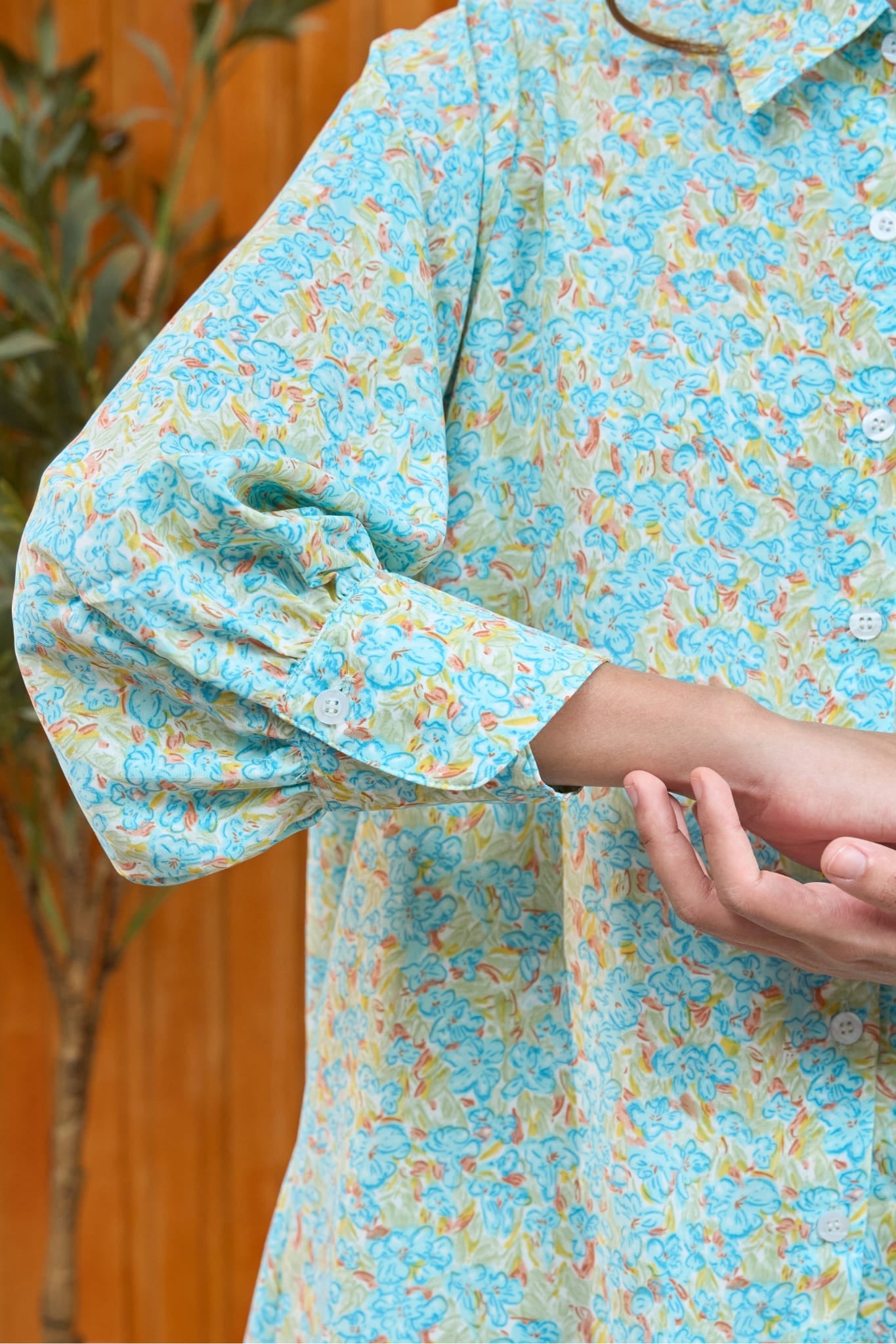 Say hello to Maya Springtide, the shirt that captures the essence of a blooming season. Available in two captivating floral colourways — Sky Fern, a refreshing mix of blue and green florals, and Peach Sage, a soft blend of sage green and peach blossoms — this design brings everyday elegance to life.